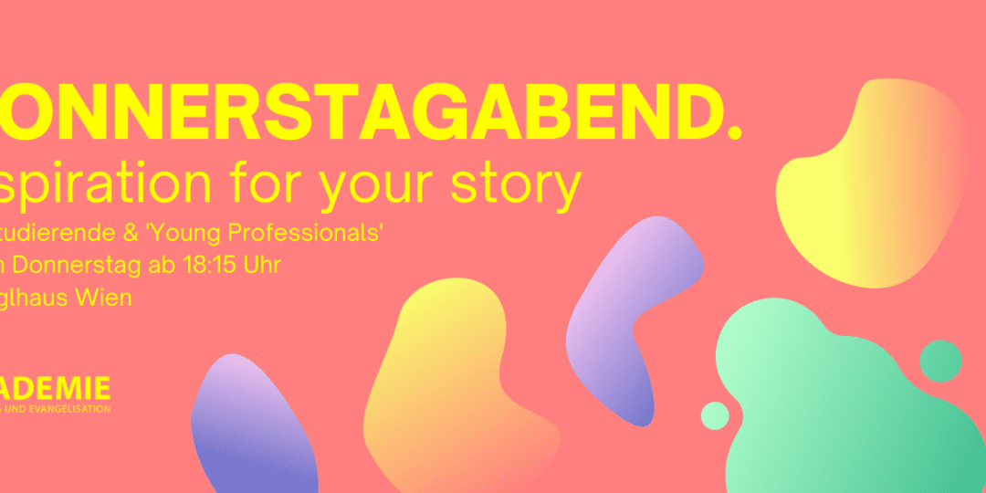22. Juni 2023 @ 18:15 – 20:30 – Der ‚donnerstagabend.‘ ist ein spirituelles Dialogprojekt von Lehrgangsalumnis aus dem Wiener Figlhaus. Der Abend ist ein Angebot an all jene, die den christlichen Glauben entdecken oder vertiefen wollen. Für wen: Junge Menschen, zwischen 18-35 Jahren, treffen einander wöchentlich im Figlhaus im Herzen von Wien. Egal ob gläubig oder nicht – du bist willkommen! Was passiert: […]