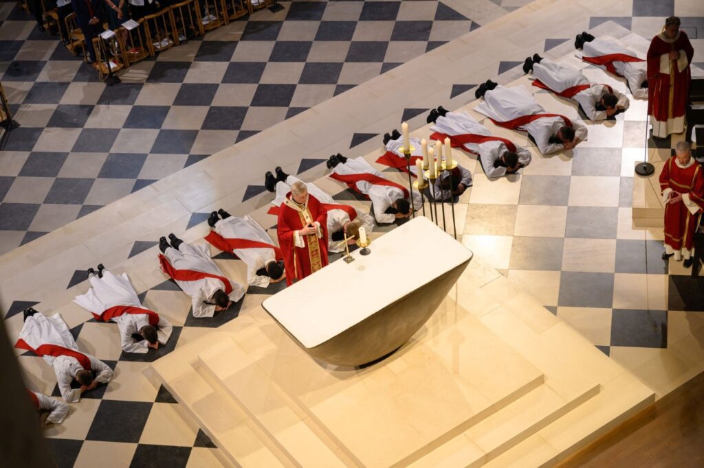 Laurent Ghirardotti, Erwan Saint-Macary und Ludovic Li Sim Yam wurden am Samstag, den 28. Juni, von Erzbischof Laurent Ulrich von Paris in der Kathedrale Notre-Dame de Paris zu Priestern geweiht.